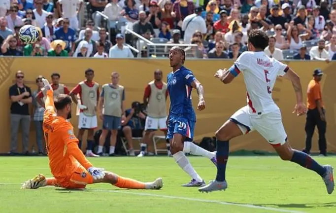 但这一次,切尔西只是让足球回归到最简单的模式,就找到了破解大巴黎的方法。蓝军开局便以硬碰硬的高强度逼抢反制巴黎,英超球队的硬朗在此刻丝毫不落下风。即便大巴黎此后展现新科欧冠冠军的锋芒,蓝军果断回撤,用坚不可摧的防守链条喘息蓄力。随着大巴黎的阵型在进攻中逐渐压上,切尔西的致命杀招——精准长传打身后,便如出鞘利刃,一次次精准刺向巴黎后卫身后那片辽阔的空旷地带。帕尔默、佩德罗、内托的冲击如猎豹般启动,每一次冲刺都让大巴黎的防线风声鹤唳。所谓“无解”的大巴黎,在切尔西这种化繁为简、直击要害的“英超硬度”面前,显得如此脆弱。